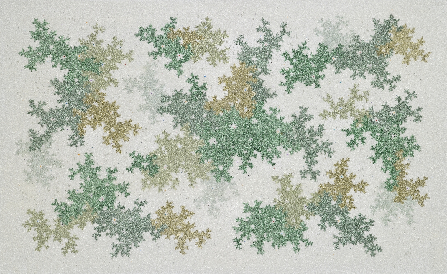 ‘쌀알’ 이미지는 작가가 사용하는 비유적 개념으로, 미시적 단위의 이미지 요소를 의미한다. 점, 입자, 작은 형태들은 개별적으로는 미약하지만 반복과 중첩을 통해 하나의 거시적 공간을 형성한다. 이러한 미시 단위의 집합은 전체 공간이 단순한 합이 아닌, 스스로 생성되는 구조임을 드러낸다. 쌀알 이미지는 미시세계와 거시세계가 연결되는 방식을 시각적으로 드러내는 핵심 요소이다.