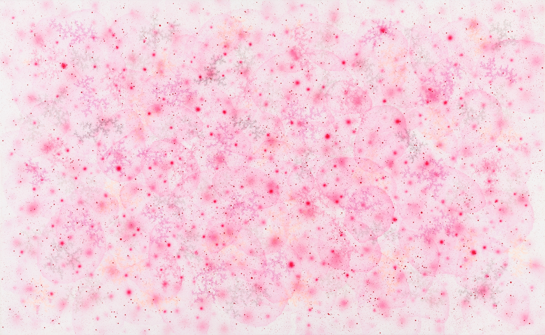 섬세하게 그려진 선과 옅은 색면들이 회화의 표면을 부유한다. 타원과 사각형태들이 여러 다른 크기로 등장하고, 때로는 완전한 형을 이루지 못한 채 형태의 제안에 머물며, 또 한편으로는 마치 공간적 연속을 이루듯 반복적으로 겹쳐진다